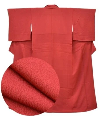 JAPANESE KIMONO VINTAGE SILK ROBE FORMAL JACKET IROMUJI RED 3mt1934P