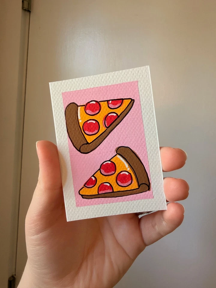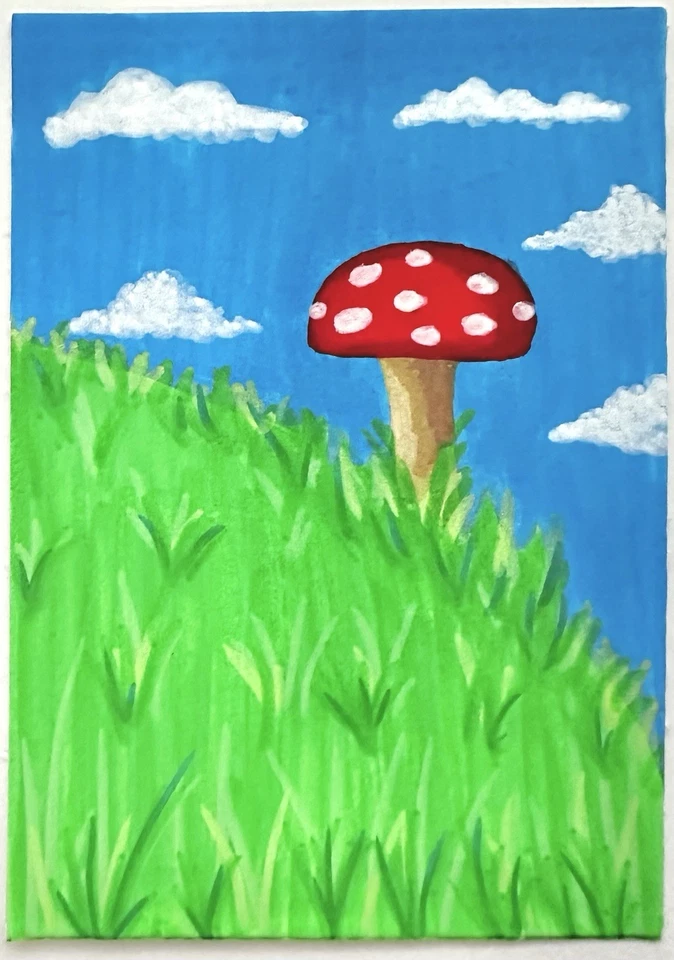 ACEO Original Art Card Painting of Mushrooms, Sky Clouds, Signed by Artist #3/3