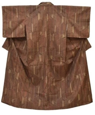 JAPANESE KIMONO VINTAGE / SILK / JACKET ROBE / KOMON TSUMUGI BROWN 3mt1675/