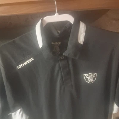 Reebok Oakland Raiders NFL Polo Shirt Black White Football Official