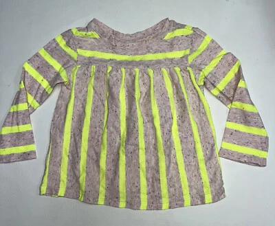 Cat Jack Toddler Girl Shirt SZ 2T Beige Specked Neon Yellow Striped Long Sleeve