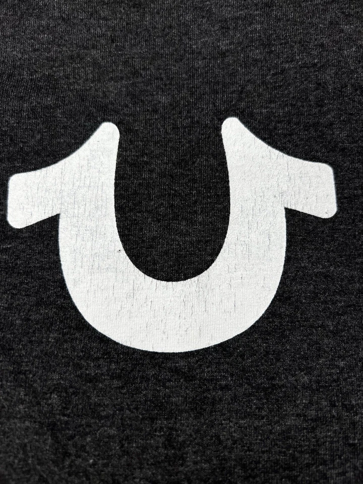 True Religion Men's Solid Dark Grey Lucky Horse Shoe T Shirt Size Large