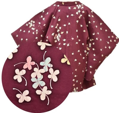 JAPANESE KIMONO VINTAGE SILK JACKET ROBE RED BUTTERFLY 3mt1676P/