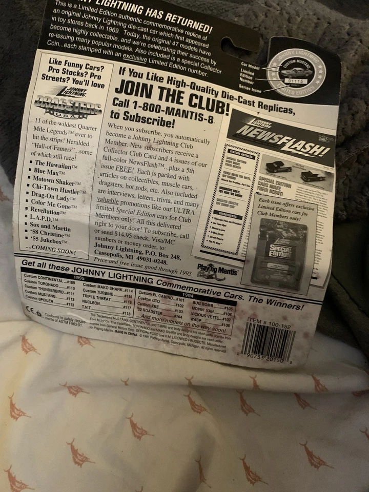 Johnny Lightning Commemorative Limited Edition 1:64 Diecast Car 1995 White Black