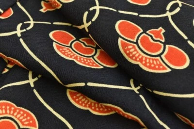 JAPANESE VINTAGE KIMONO SUMMER ROBE JACKET KOMON FLOWER BLACK 3mt2156P