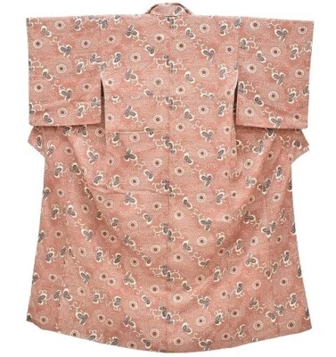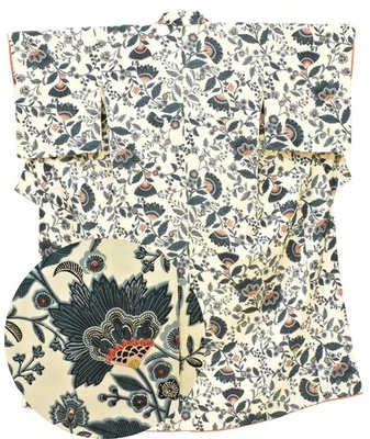 JAPANESE KIMONO VINTAGE / SILK / JACKET ROBE / KOMON FLOWER 3mt1432P