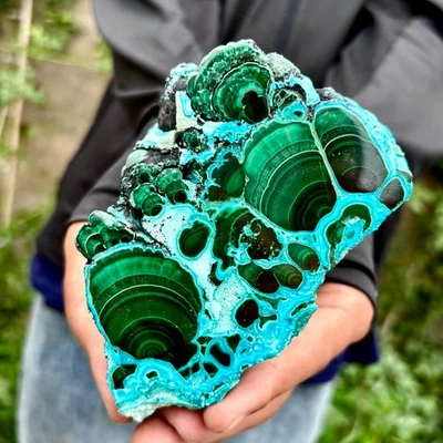 340G Natural Chrysocolla/Malachite transparent cluster rough mineral sample