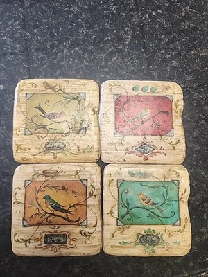 Kate McRostie Set Of 4 Bird Stone Tile Coasters Cork Board Backs