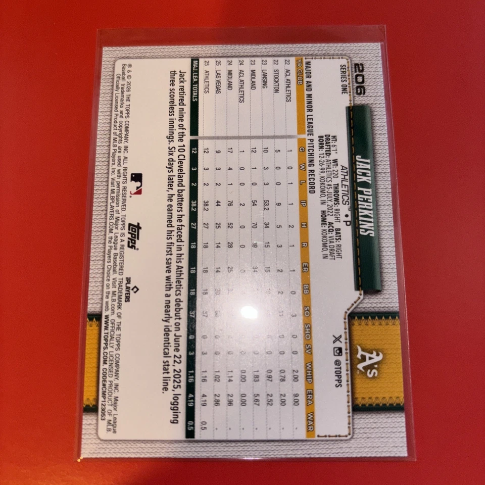 2026 Topps Series 1 - Jack Perkins (RC) Spring Training Parallel - A's - #206