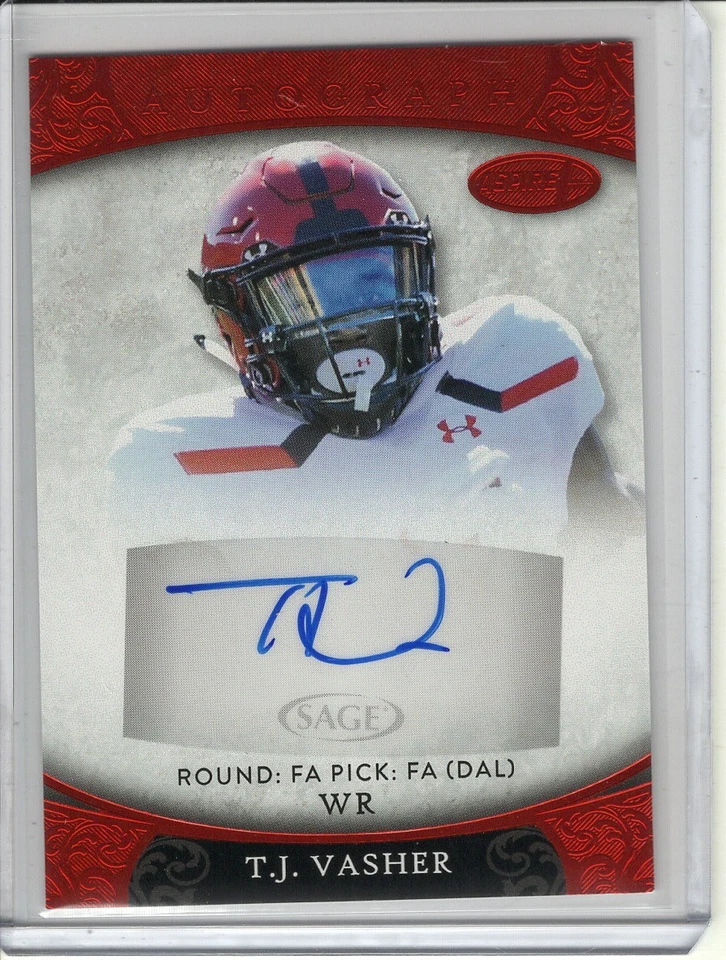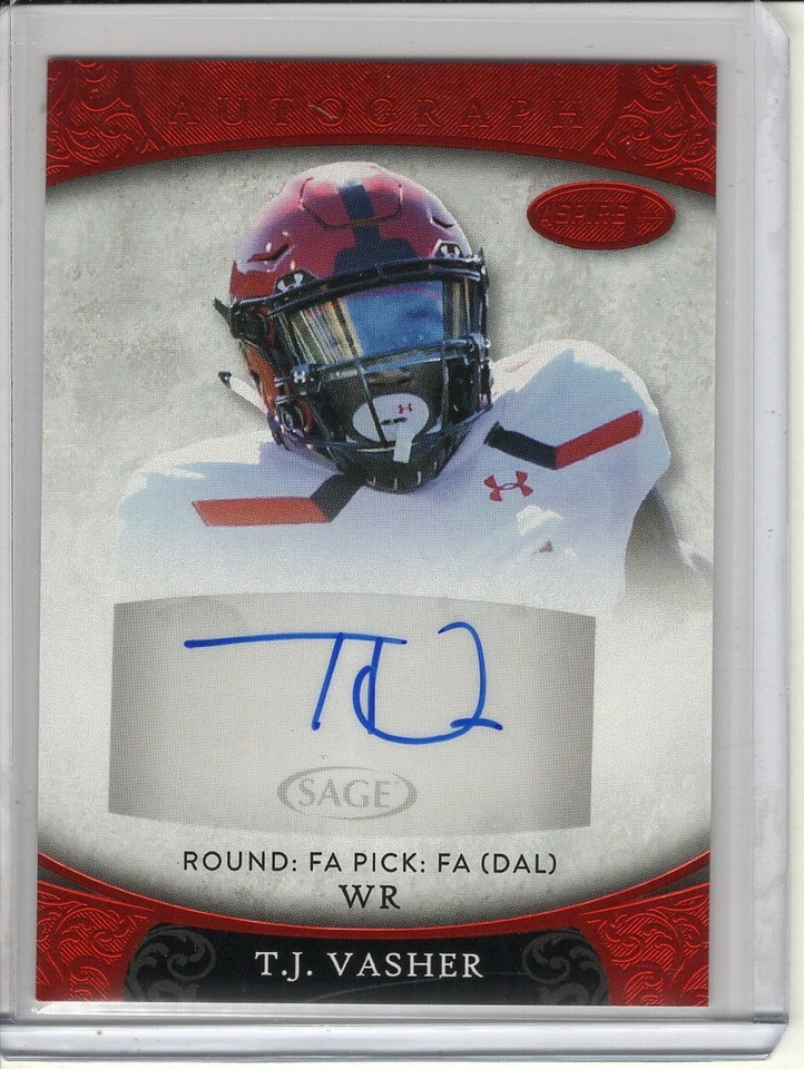 2021 SAGE ASPIRE TJ VASHER ROOKIE/RC AUTO #ASP131 *RED*
