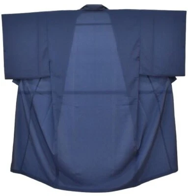 JAPANESE VINTAGE KIMONO JACKET ROBE KOMON WOOL DEEP BLUE 3mt2222