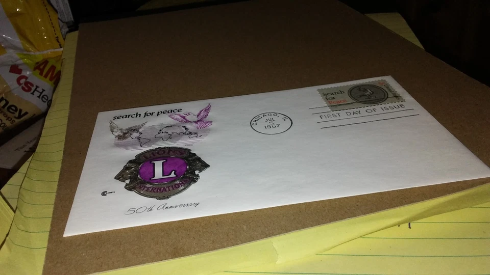 1st Day Cover -- Lions Club 50th anniversary -- Search for Peace