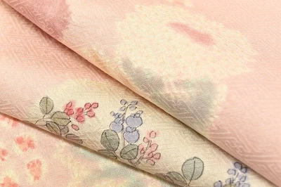 JAPANESE KIMONO VINTAGE SILK JACKET ROBE FLOWER PINK 3mt1025P/