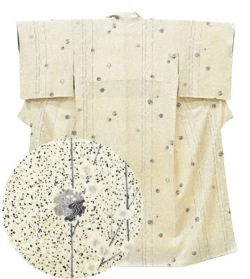 JAPANESE VINTAGE KIMONO SILK JACKET ROBE KOMON FLOWER WHITE 3mt2211P