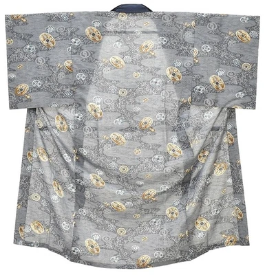 JAPANESE KIMONO VINTAGE COTTON ROBE YUKATA SUMMER JAKET GRAY 3mt1917