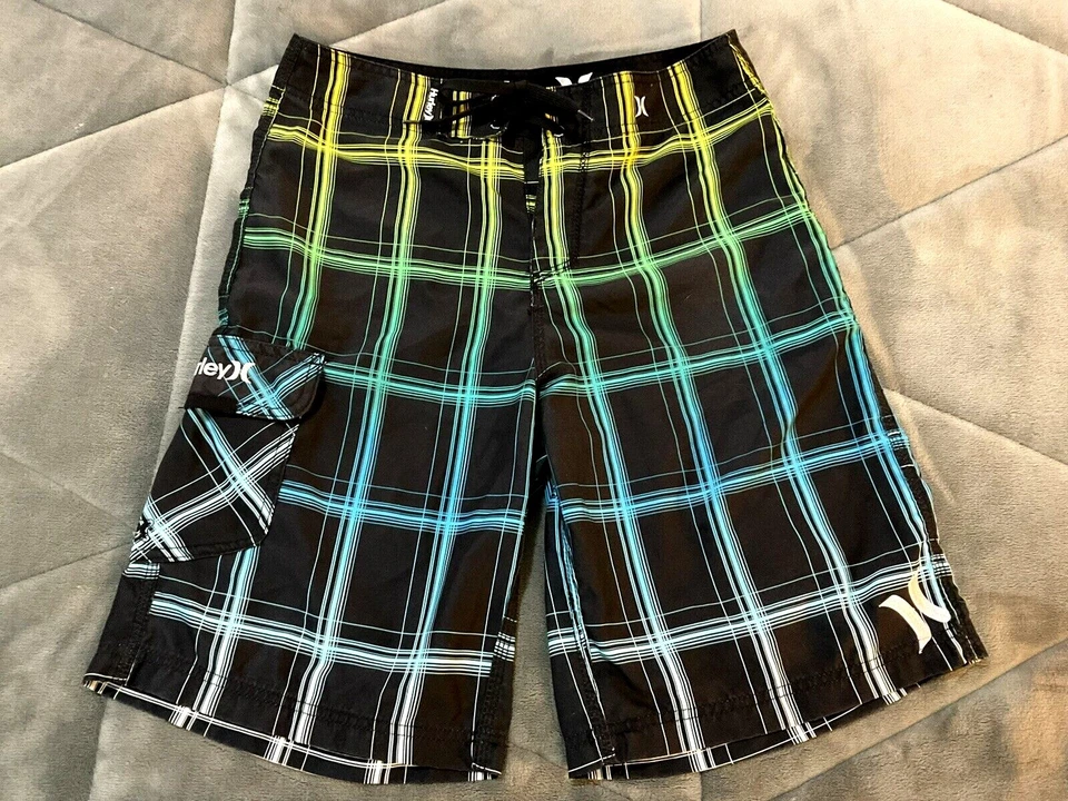 Hurley Multi-Color Swim Trunks Mens Sz 30 Small Green Yellow Black Drawstring