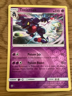 Toxicroak Pokemon Card 55/147 - Reverse Holo- Used - Burning Shadows