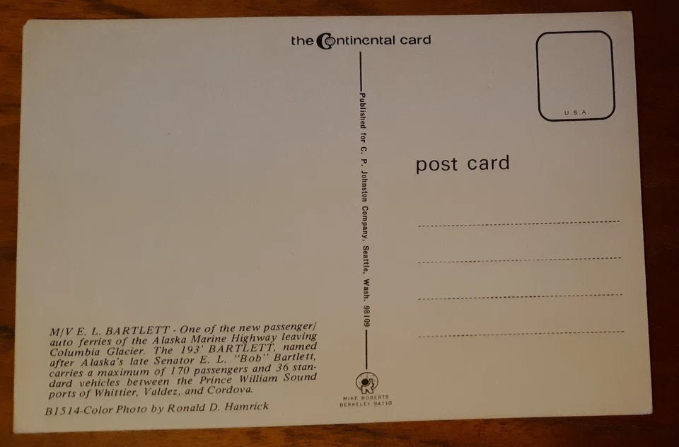 M/V E. L. Bartlettt Ferry Leaving Columbia Glacier B1514 NEW unposted