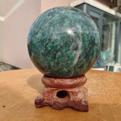 305g Natural Green crystals and chalcopyrite coexist Sphere Quartz Ball Healing