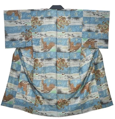 JAPANESE VINTAGE KIMONO SILK JACKET ROBE KOMON BLUE 3mt2372P