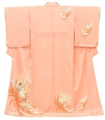 JAPANESE KIMONO VINTAGE SILK JACKET ROBE HOMONGI FLOWER PINK 3mt1975P