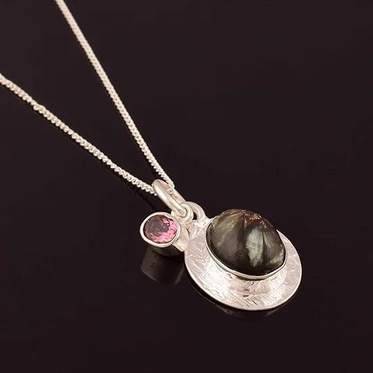 Natural Seraphinite and pink tourmaline Pendant Dainty Healing Gemstone Jewelry