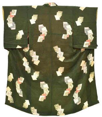 JAPANESE KIMONO VINTAGE SILK ROBE ANTIQUE JACKET KOMON GREEN 3mt2055