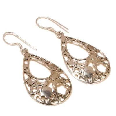 Flower Design Silver Overlay Handmade No Stone Drop Dangle Drop Earrings A900