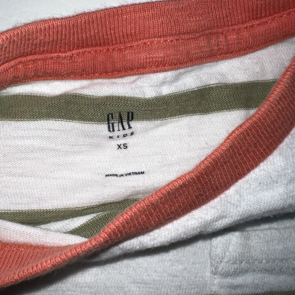 Gap Boys Striped Pocket Tee XS 4 5 White Green Orange Short Sleeve Crew Neck