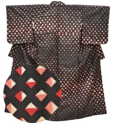 JAPANESE KIMONO VINTAGE SILK ANTIQUE JACKET ROBE KOMON BLACK 3mt1668P