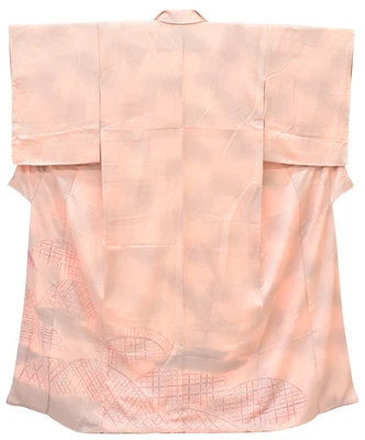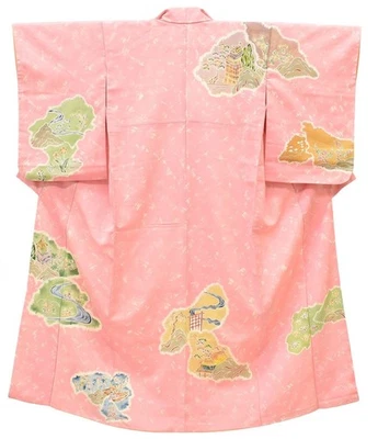 JAPANESE VINTAGE KIMONO SILK ANTIQUE JACKET ROBE HOMONGI WEDDING PINK 3mt2319P