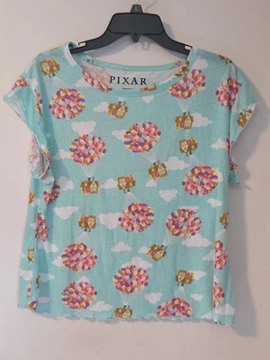 Disney Pixar Up PJ Top Shirt Womens LG 12/14 Balloons Sky Scalloped Trim Tshirt