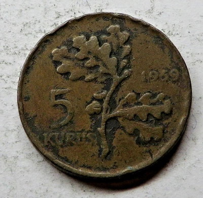 Turkey 5 Kurus 1969 Bronze KM#890.2