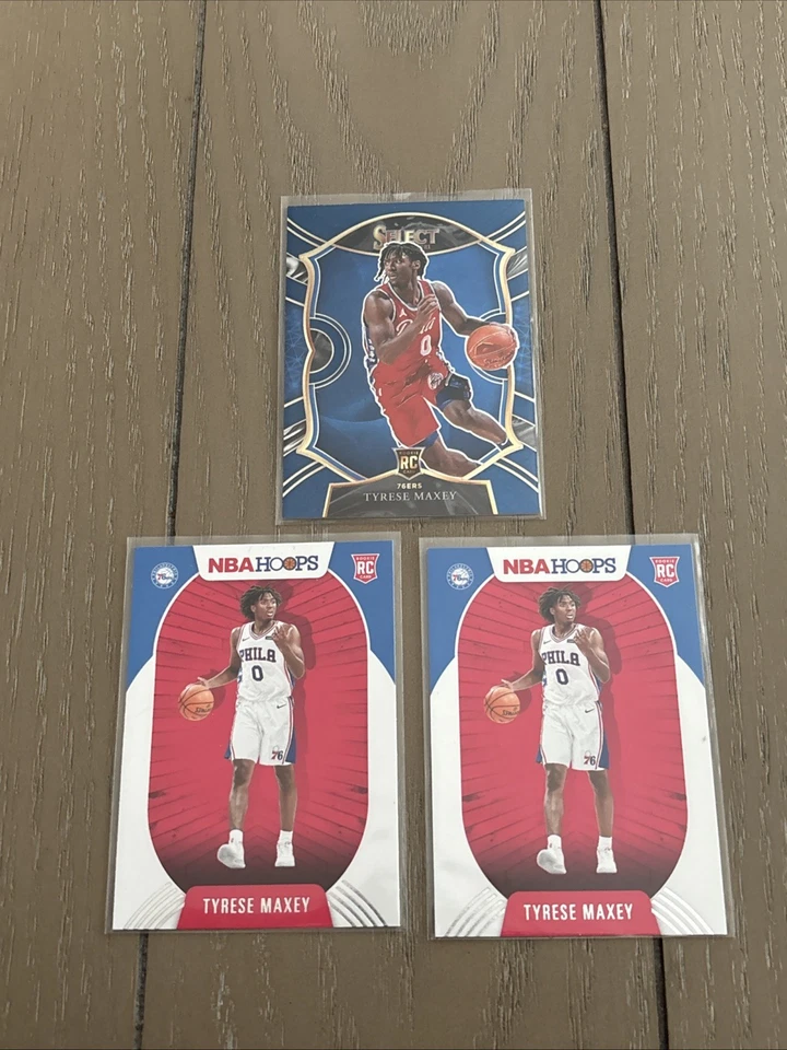 Tyrese Maxey RC Lot (3) - NBA Hoops #207 & Select Concourse #81