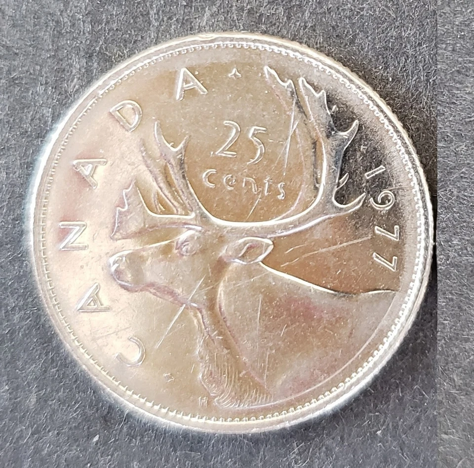 One (1) 1977 Canada 25 Cents Quarter, circulated