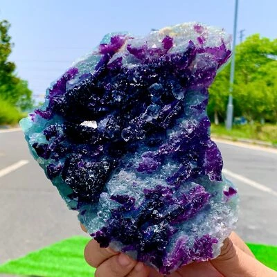 3.08LB Rare transparent purple-green cubic fluorite mineral crystal sample/China
