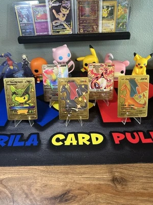 GOLD! 5 Pokemon Gold Metal/Foil Fan Art Cards (Metal Charizard, Gold Pikachu)