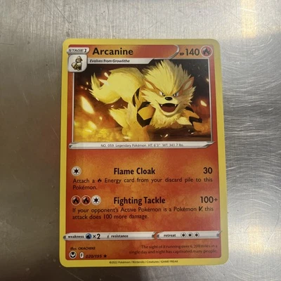 Arcanine 020/195 Rare Silver Tempest Pokemon TCG NM
