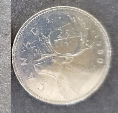 One (1) 1980 Canada 25 Cents Quarter, circulated