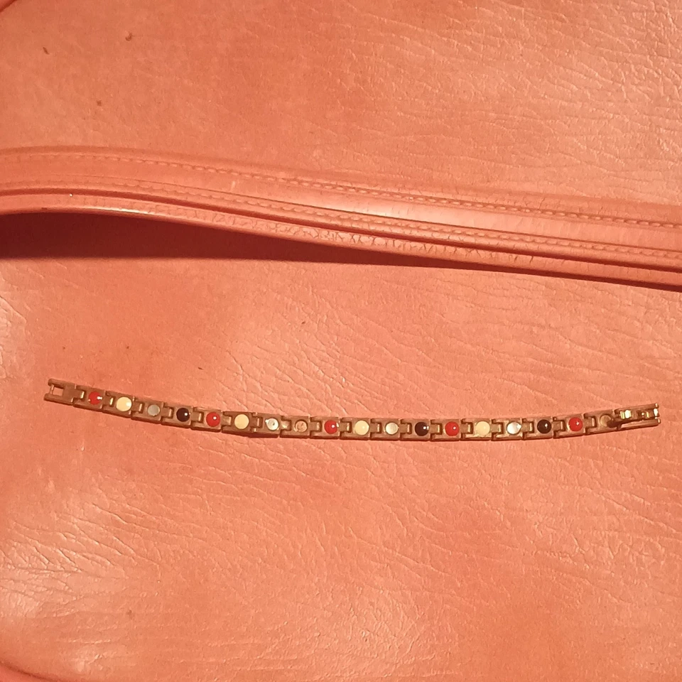 Gold Tone Magnetic Therapy Bracelet with Multicolor Elements