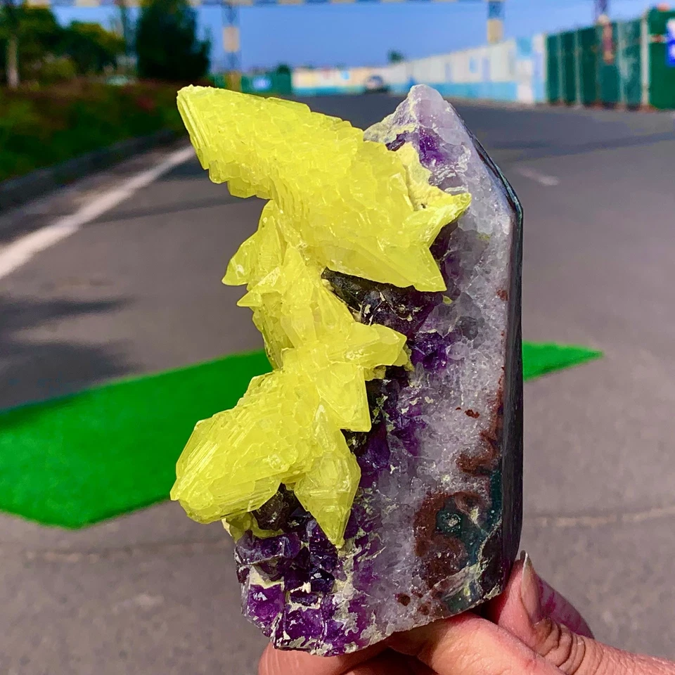 1.5LB Minerals ** LARGE NATIVE SULPHUR OnMATRIX Sicily With+amethyst Crystal