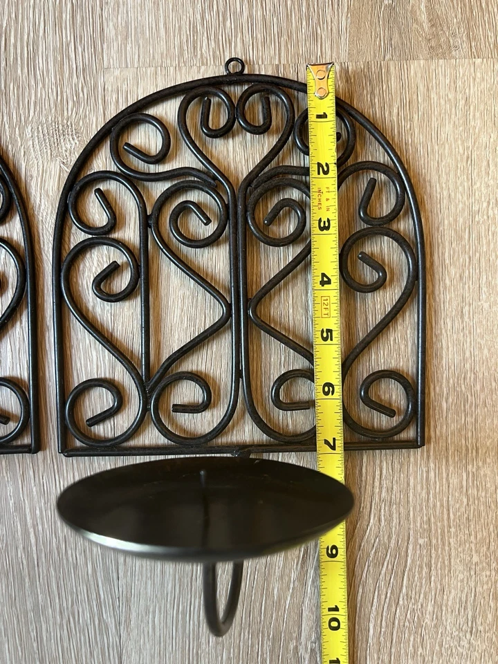 Vintage? Wrought Iron Wall Sconces, Candle Holders, Set of 2, Black Swirls