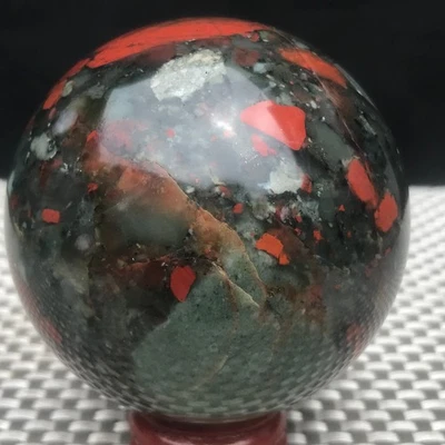 461G Natural African blood stone quartz sphere crystal ball reiki healing