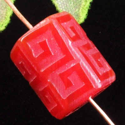 Faceted Red Agate Column Lucky Symbol Pendant Bead 16x12mm H88574
