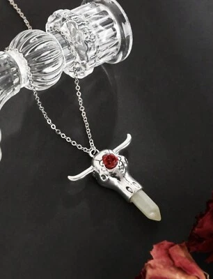 Bull Horn Ox Head Necklace Pendant Gothic Skull Necklace Crystal Bead Rose