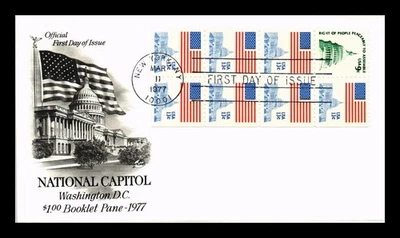 US COVER FLAG OVER CAPITOL $1 BOOKLET PANE FIRST DAY ISSUE ARTCRAFT