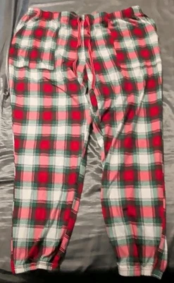Joyspun Women's Plaid Pajama Pants XL Drawstring Red Green White