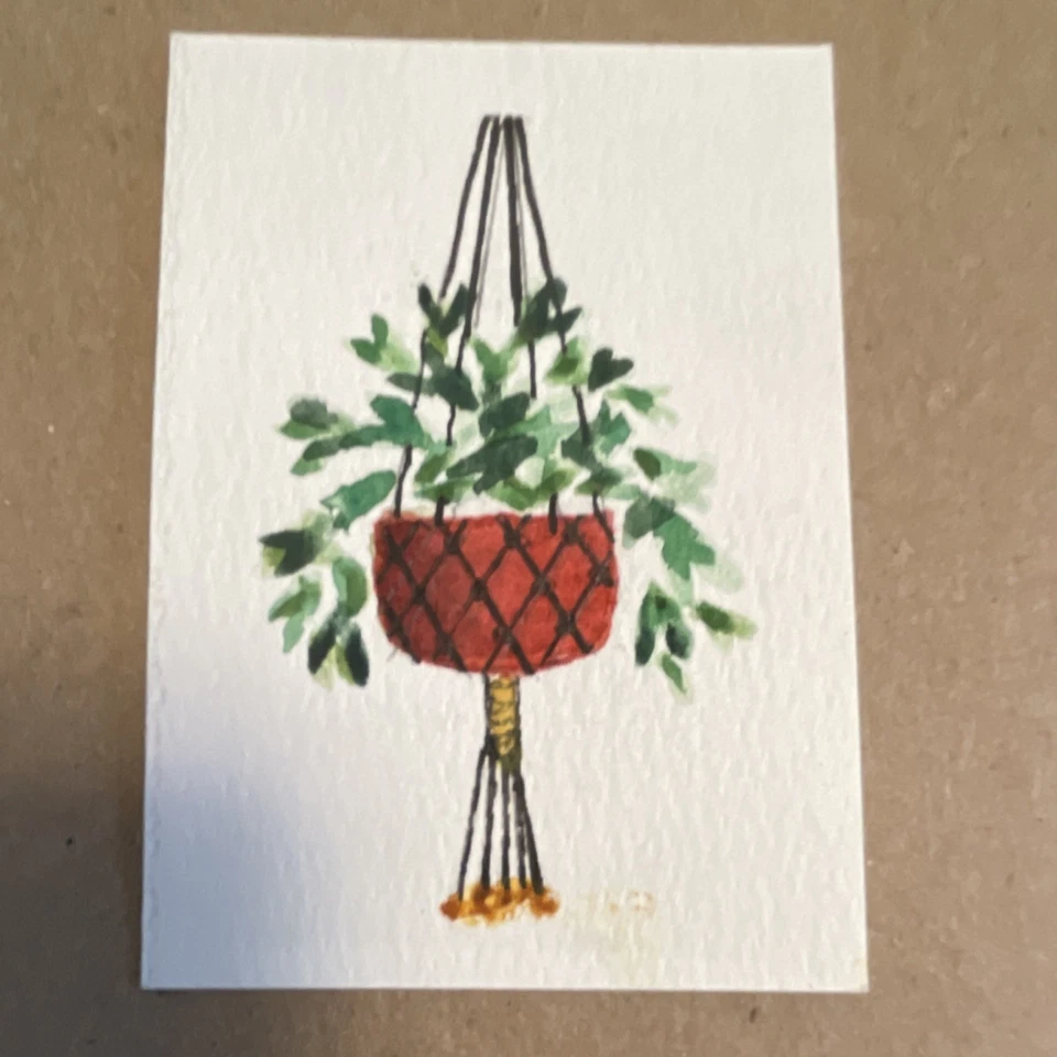 Watercolor Miniature Botanical Hanging Plant Painting on Paper, Original Art