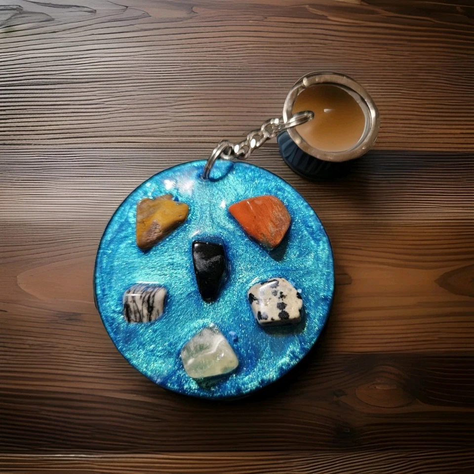 Handmade Gemstone Art keychain Purse Bags Charm One Of A Kind Numbered #1 Signed