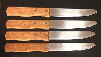 SET OF 4 UNBRANDED JUMBO HALF SERRATED STEAK 🥩 KNIFES 10”OVERALL 5”BLADES •